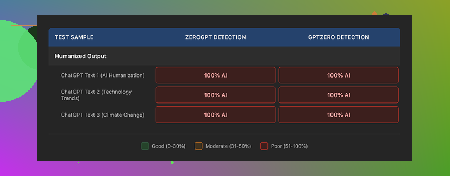 Every single output still came back as 100 percent AI.