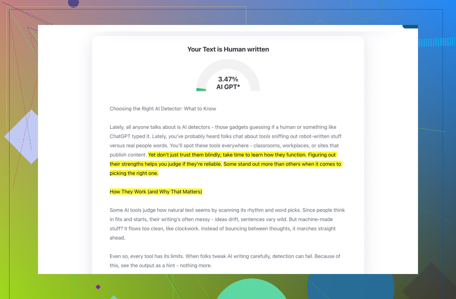 Also: don’t feel like you need to break every AI detector on Earth. Sometimes, a little AI-y vibe is fine, especially if you’re not trying to pass this off as, like, a personal college essay.