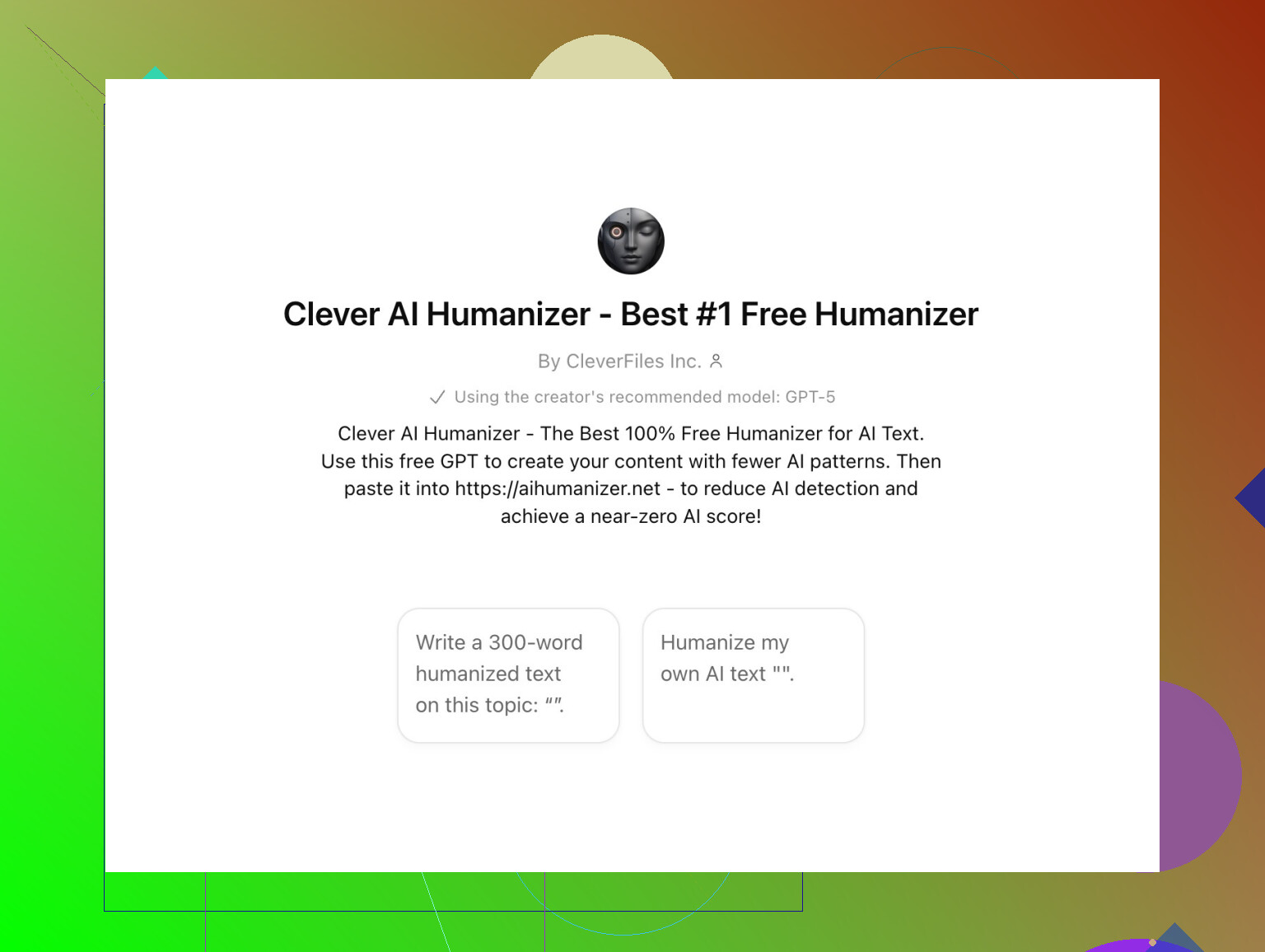 Alright, apparently it all starts at this GPT Humanizer on ChatGPT. It’s not just vanilla ChatGPT; it’s a custom GPT setup tailored to make AI output look a bit less… well… robotic. Think of it as taking your text to the gym for a quick sculpt before the big game.