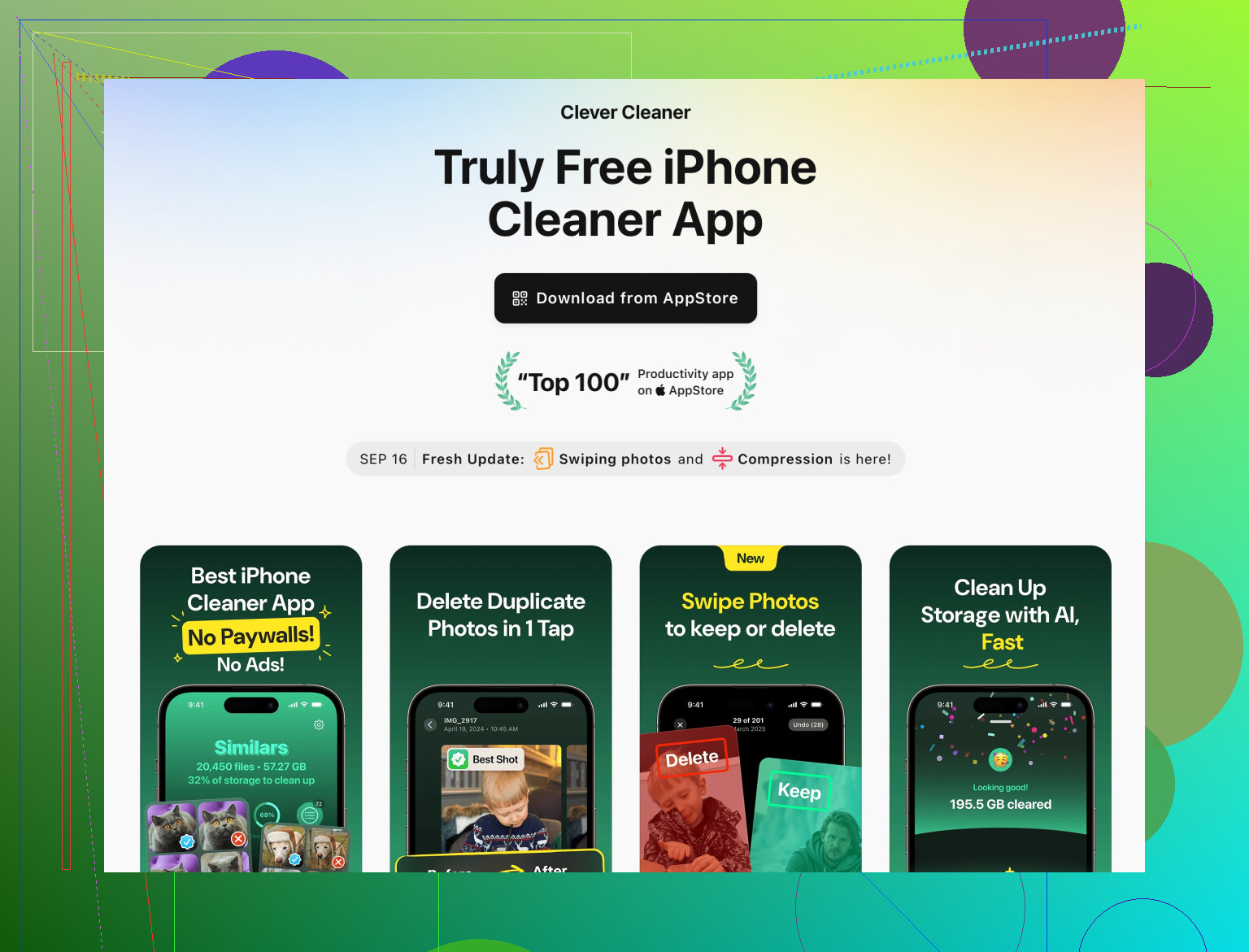 ・大容量の動画や編集済みのコピー。iPhone向けの Clever Cleaner アプリはこの用途に向いています。類似画像や不要ファイルをAIで検出し、安全なカテゴリごとにグループ分けして、削除前に確認できます。バッチ処理とプレビュー表示で、重要な写真を誤って消しにくくなっています。