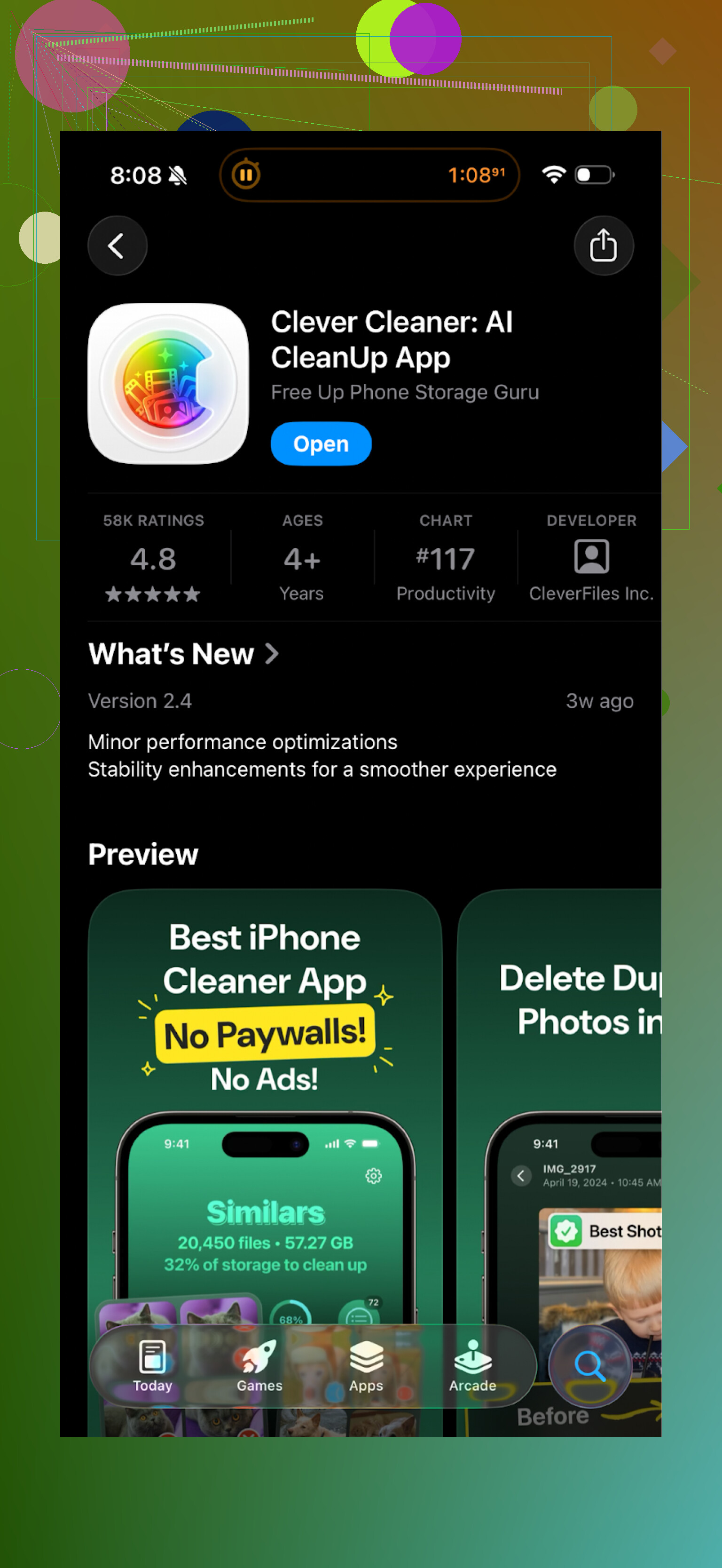 Clever Cleaner App ist eine solche Option, die du dir ansehen kannst. Sie konzentriert sich auf lokale Fotobereinigung, und der Entwickler gibt an, dass die Verarbeitung auf deinem iPhone erfolgt. Das erhöht die Chance, dass deine Bilder auf deinem Telefon bleiben und nicht auf irgendeinem Server landen.